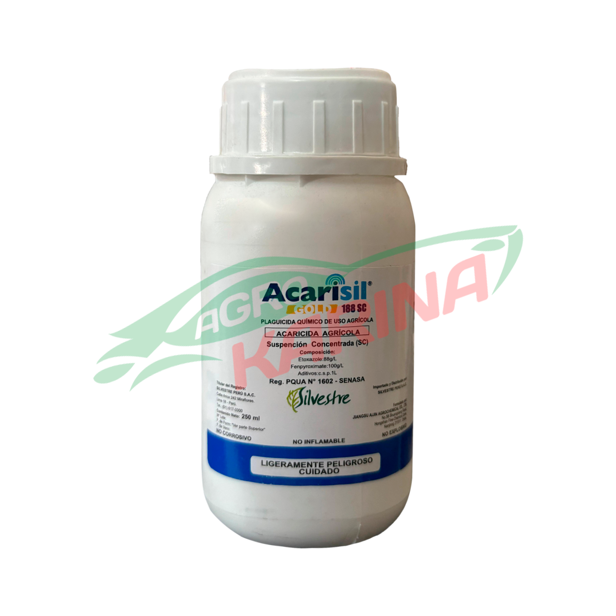 ACARISIL GOLD® 188 SC es un acaricida agrícola de acción combinada, formulado para el control eficaz de ácaros en diferentes estados de desarrollo. Contiene Etoxazole, que inhibe la biosíntesis de quitina, afectando la muda, el crecimiento y el desarrollo de los estados inmaduros, además de esterilizar hembras adultas. También incluye Fenpyroximate, que interfiere en el transporte de electrones en el complejo mitocondrial I, causando la muerte del ácaro.