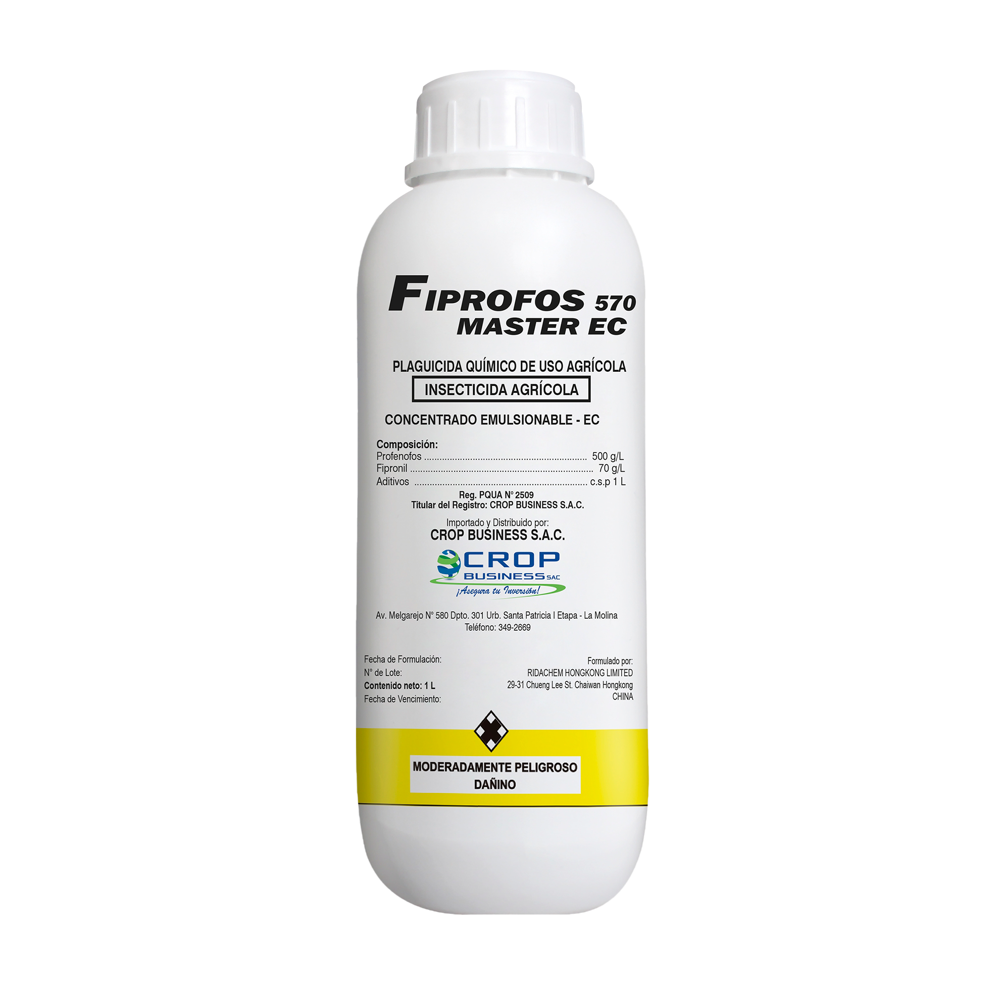 Fiprofos Master 570 EC es un insecticida sistémico y de contacto, formulado como concentrado emulsionable. Contiene dos ingredientes activos: fipronil y profenofos, que ofrecen control eficaz contra plagas, con acción ovicida y traslaminar. Proporciona un buen efecto residual en el cultivo y es compatible con la mayoría de agroquímicos comunes.