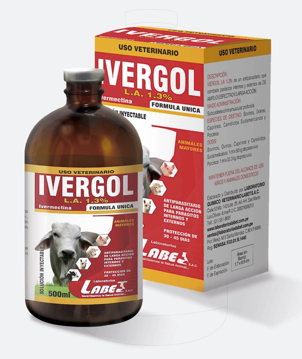 Endectocida de amplio espectro a base de ivermectina, formulado como solución inyectable. Indicado para el control y tratamiento de parásitos internos (gastrointestinales y pulmonares) y externos en bovinos, camélidos sudamericanos, ovinos, caprinos y porcinos. Activo también contra ácaros, piojos, miasis, nuche (Dermatobia hominis) y garrapatas (Boophilus microplus). Su formulación permite una liberación lenta y segura del principio activo, prolongando la protección con una sola aplicación por al menos 50 días.