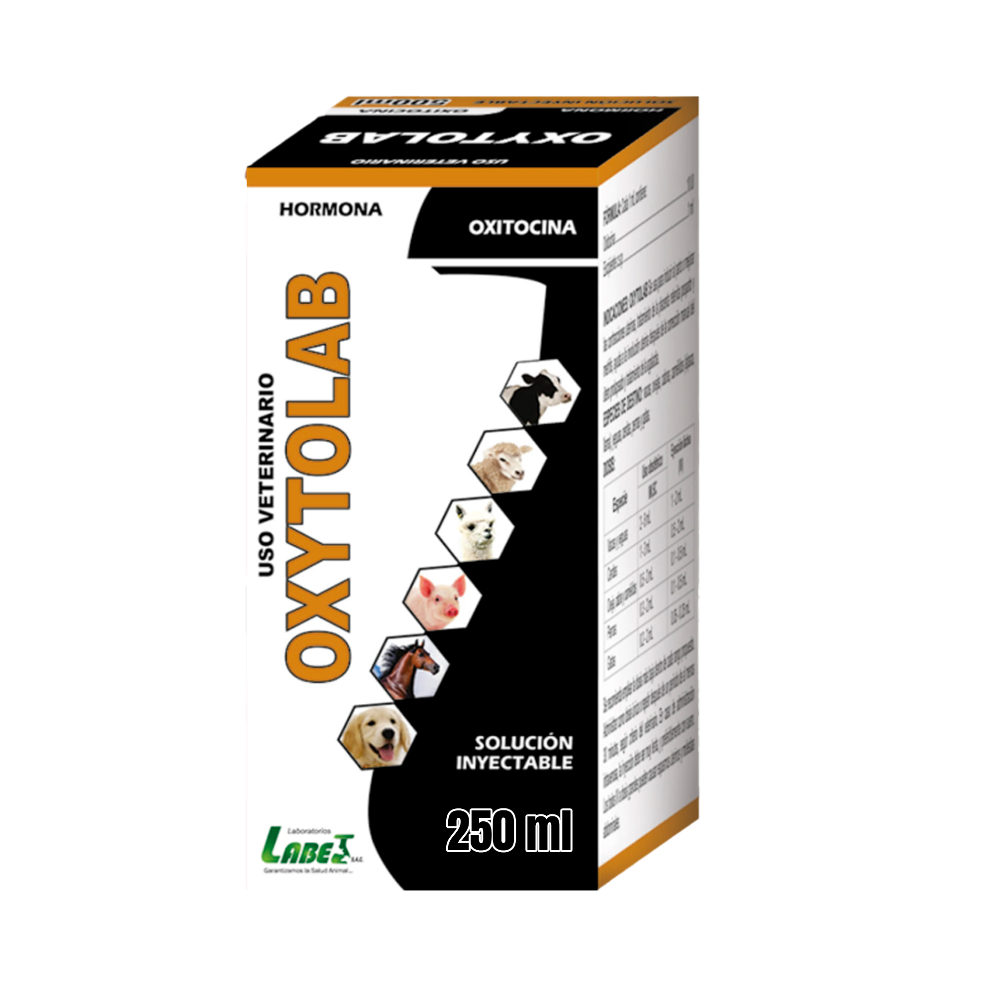 Oxytolab es un tratamiento aplicado para complicaciones de placenta retenida en bovinos, ovinos, porcinos y caninos. Está elaborado a base de oxitocina, hormona que induce contracciones para facilitar la expulsión de la placenta después del parto. También se utiliza para inducir el parto o mejorar las contracciones uterinas, tratar metritis (inflamación del útero), ayudar en la evolución uterina tras corrección manual de útero prolapsado y como tratamiento en casos de agalactia (disminución o falta de leche en las mamas después del parto).