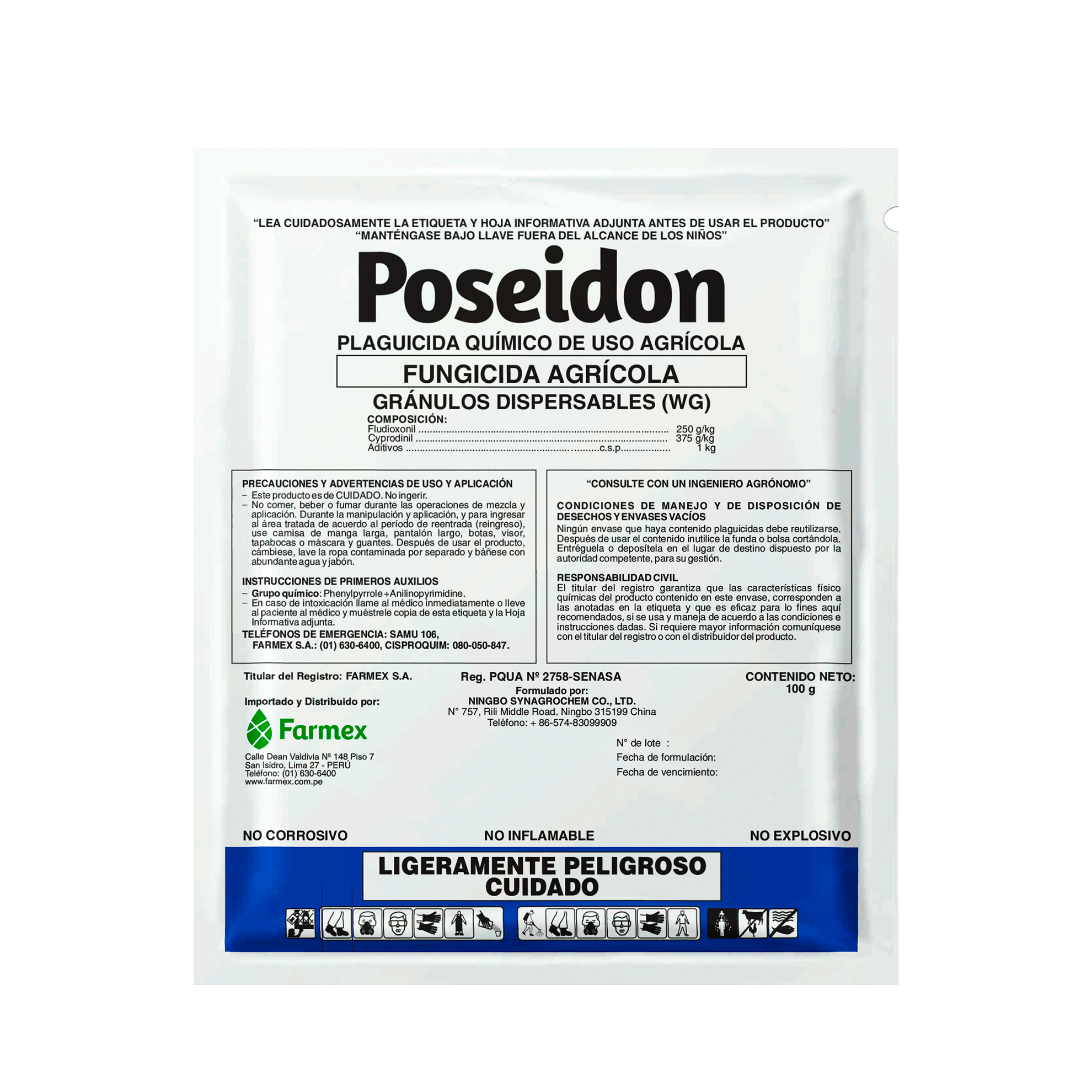 POSEIDON® es un fungicida formulado en gránulos dispersables en agua (WG) que combina fludioxonil y cyprodinil. Controla eficazmente la pudrición gris causada por Botrytis cinerea y otros hongos fitopatógenos.